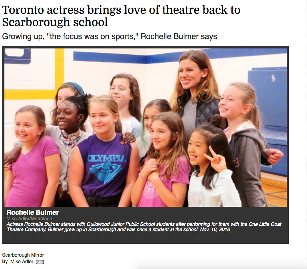 Thanks to a year-long $34,800 Seed grant from the Ontario Trillium Foundation, made in June 2016, “Toronto’s enterprising One Little Goat Theatre Company” (New York Times) has performed the company’s first play for young audiences for 10,000 elementary school students. This completes the company’s tour of 39 of the Toronto District School Board’s Model Schools for Inner Cities, begun last fall and performed at no charge to the schools.